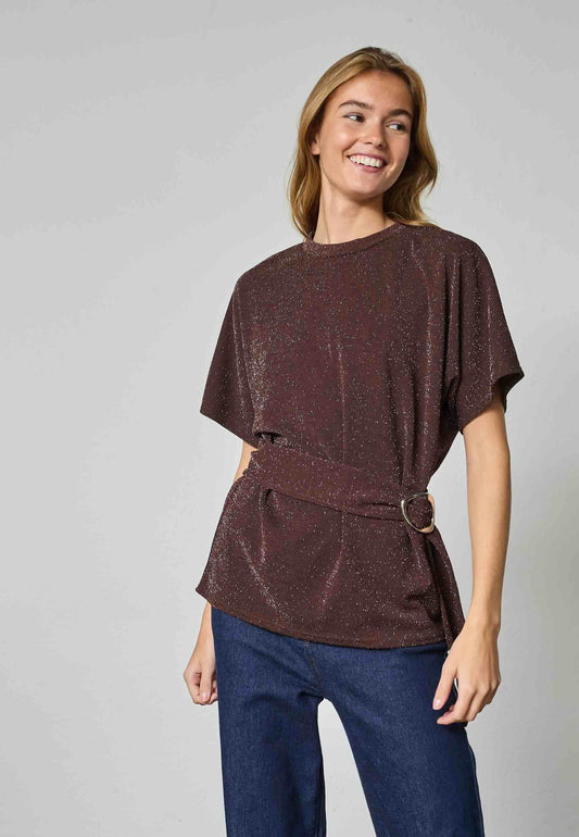 Blouse Gertantu Streep Doorknoop Rood/Jeansblauw