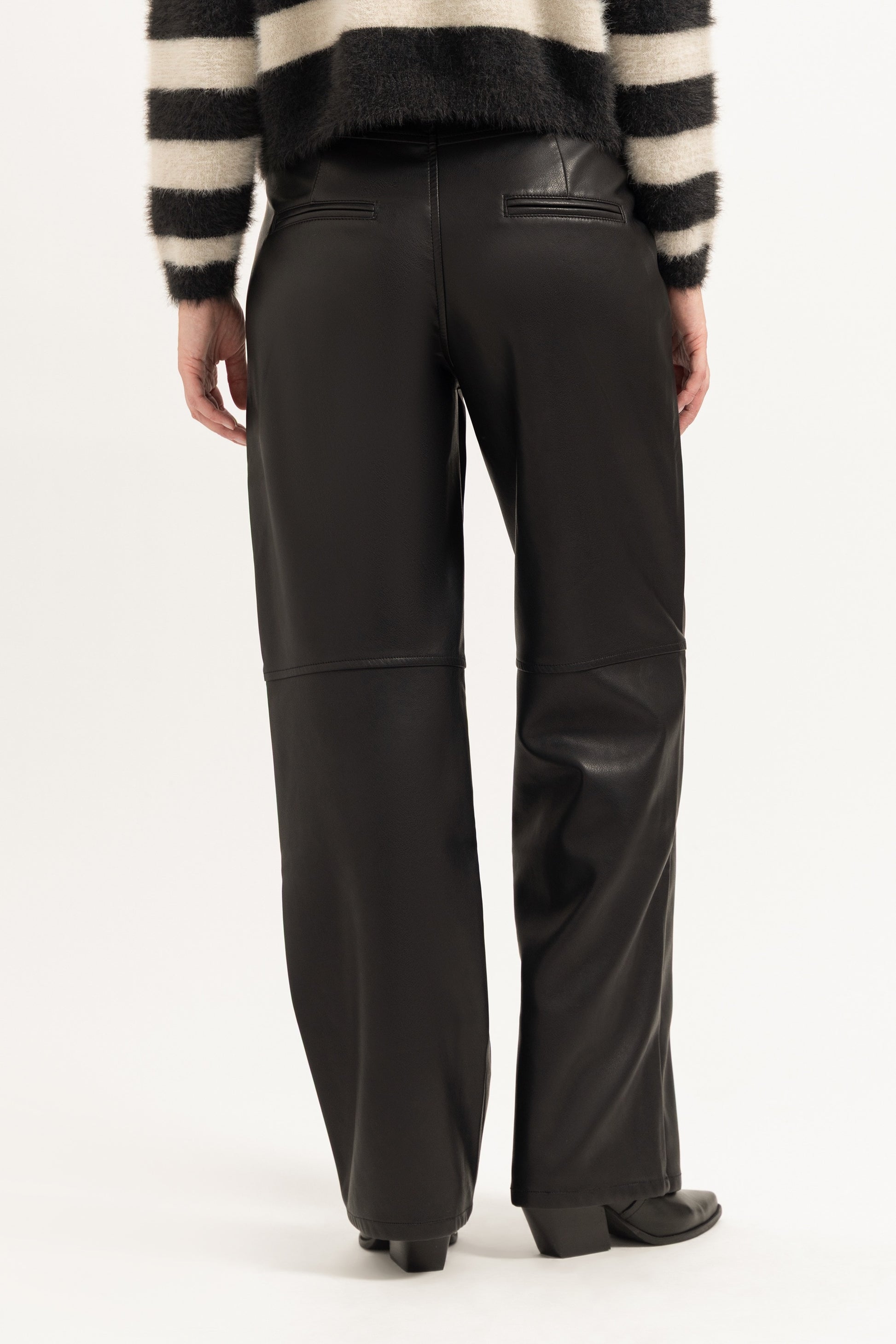 De Florez Broek Amalia in fake leather is een echte eyecatcher met een stoere, vrouwelijke uitstraling. De coating zorgt voor een leather-look, terwijl de zachte stretchstof garant staat voor optimaal draagcomfort. Een perfecte combinatie van stijl en gemak, geschikt voor zowel overdag als ’s avonds.