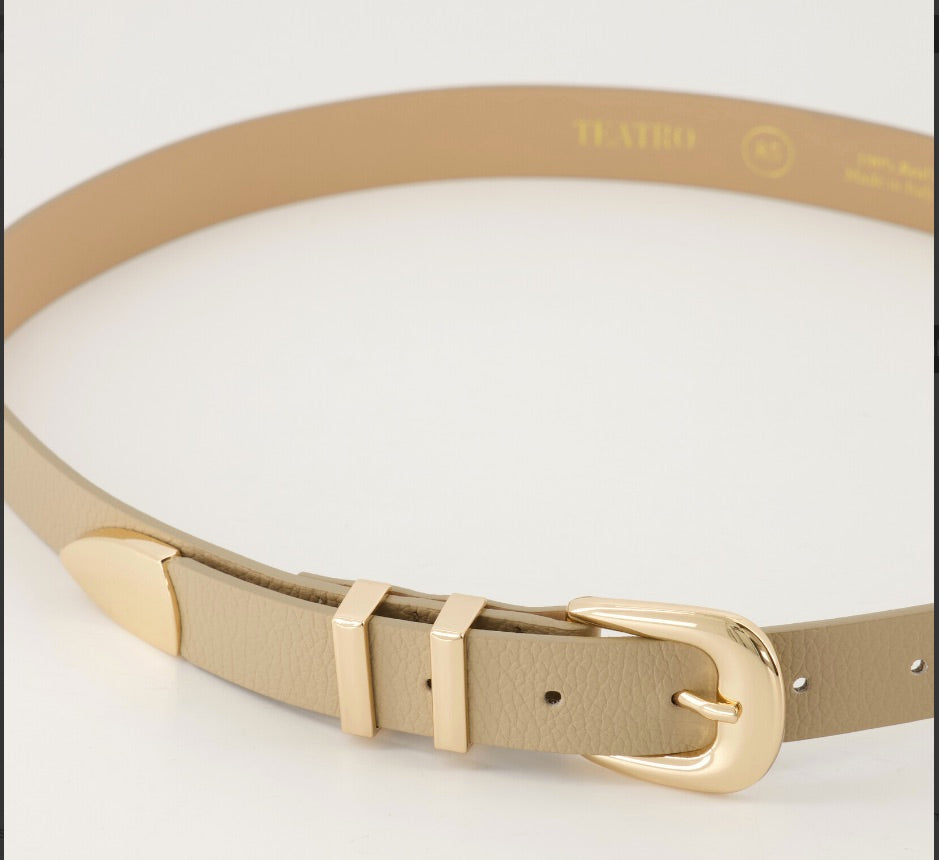 De Teatro Apparel Riem Dune is een stoere en stijlvolle riem met een moderne uitstraling. De bredere pasvorm en opvallende gesp maken dit accessoire tot een echte eyecatcher, perfect om je outfit mee af te maken. Gemaakt van stevig materiaal en voorzien van een matte afwerking past deze riem moeiteloos bij zowel een jurk, blazer als jeans.