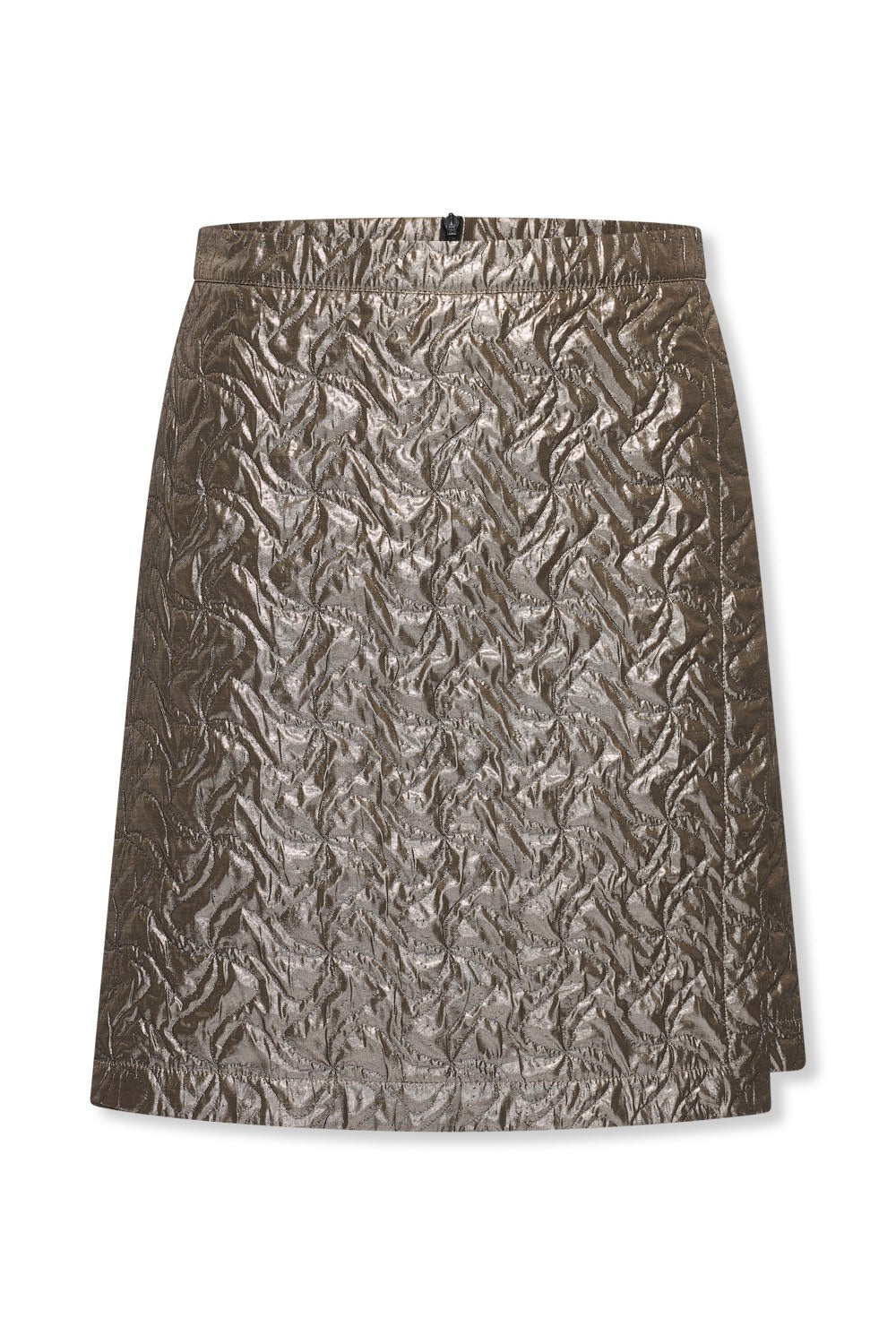 Een opvallende en stijlvolle rok van Helena Hart met een metallic bronscoating. Deze stretchrok is gemaakt van een comfortabele stof die mooi aansluit op het lichaam en tegelijk een krachtige, moderne uitstraling geeft. Perfect voor een feestelijke look met een edgy twist.