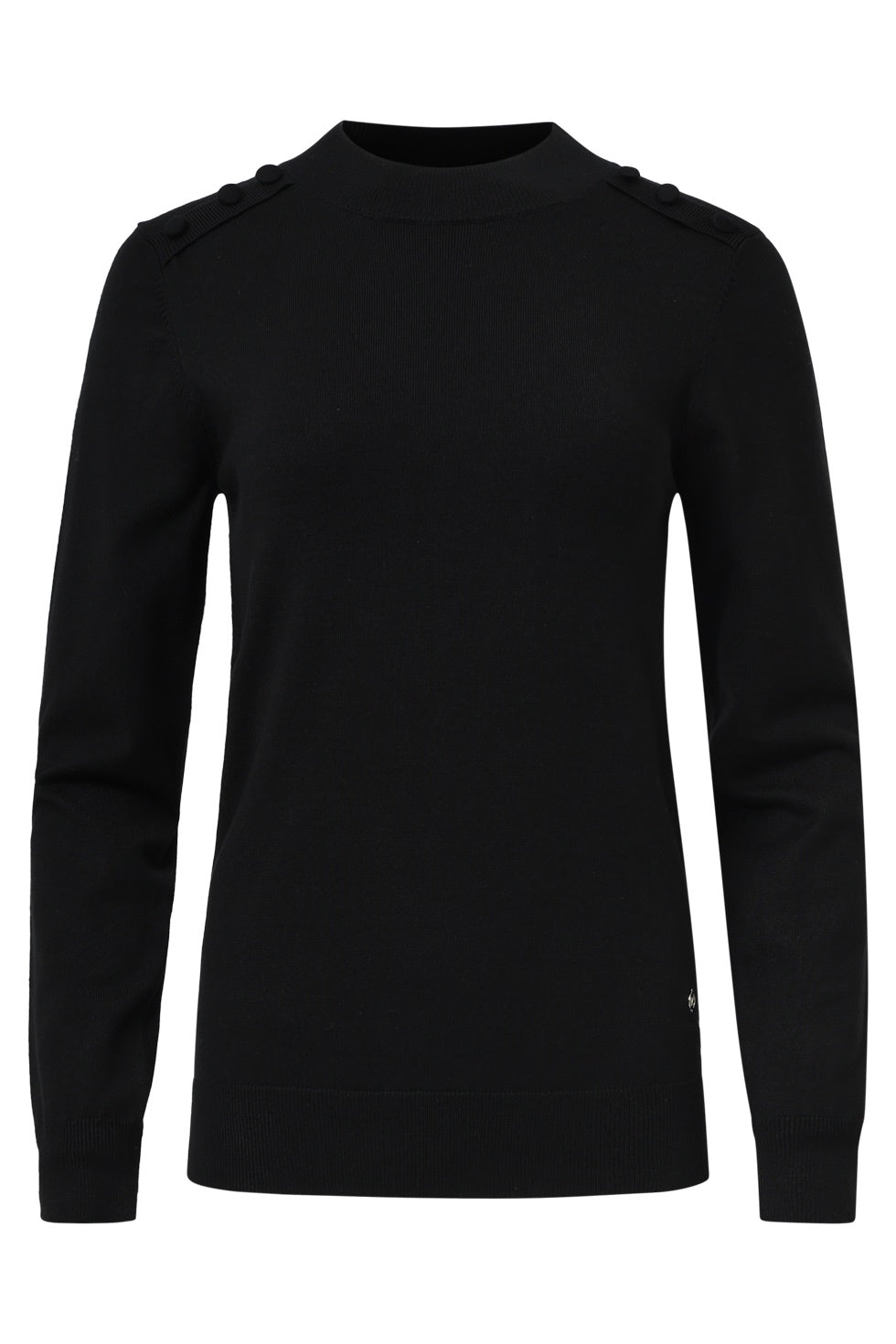 Deze stijlvolle trui van Smashed Lemon combineert comfort met een elegante touch. De hoge turtle neck houdt je warm op koude dagen, terwijl de decoratieve knopen op de schouder zorgen voor een speels en vrouwelijk detail. Een ideale basic met nét dat beetje extra.